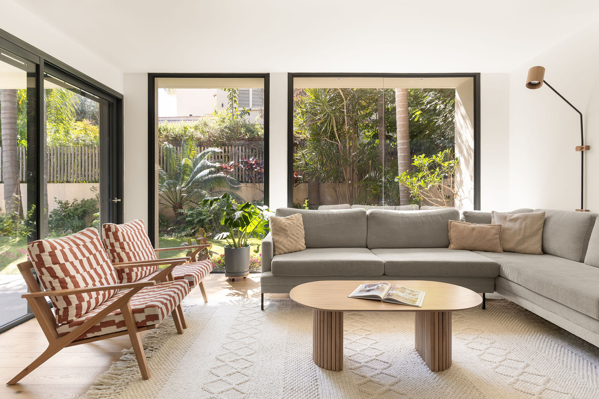 קירות המסך הגדולים מכניסים את החוץ פנימה ויוצרים תחושת פתיחות ואור.